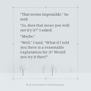 As we make our way through the obstacles and uncertainties of the day, let us remind ourselves that some things defy understanding, and just because they seem impossible, it doesn't mean we shouldn't tackle them.