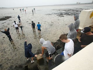 Some were tempted to walk out on the floor of the bay, while others let their dogs run, but all agreed they had never seen anything like it.