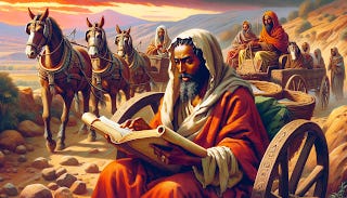 But on his arrival, Philip sees that the Ethiopian is reading from the Prophet Isaiah, and he doesn't understand what he is reading.