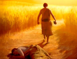 Now the man knew his wife Eve, and she conceived and bore Cain, saying, "I have produced a man with the help of the Lord." Next she bore his brother Abel. Now Abel was a keeper of sheep, and Cain a tiller of the ground. In the course of time Cain brought to the Lord an offering of the fruit of the ground, and Abel for his part brought of the firstlings of his flock, their fat portions. And the Lord had regard for Abel and his offering, but for Cain and his offering he had no regard. So Cain was very angry, and his countenance fell. The Lord said to Cain, "Why are you angry, and why has your countenance fallen? If you do well, will you not be accepted? And if you do not do well, sin is lurking at the door; its desire is for you, but you must master it." Cain said to his brother Abel, "Let us go out to the field." And when they were in the field, Cain rose up against his brother Abel, and killed him. Then the Lord said to Cain, "Where is your brother Abel?" He said, "I do not know; am I my brother's keeper?" And the Lord said, "What have you done? Listen; your brother's blood is crying out to me from the ground! And now you are cursed from the ground, which has opened its mouth to receive your brother's blood from your hand. When you till the ground, it will no longer yield to you its strength; you will be a fugitive and a wanderer on the earth." Cain said to the Lord, "My punishment is greater than I can bear! Today you have driven me away from the soil, and I shall be hidden from your face; I shall be a fugitive and a wanderer on the earth, and anyone who meets me may kill me." Then the Lord said to him, "Not so! Whoever kills Cain will suffer a sevenfold vengeance." And the Lord put a mark on Cain, so that no one who came upon him would kill him. Then Cain went away from the presence of the Lord, and settled in the land of Nod, east of Eden. - Gen. 4:1-16