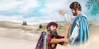 Then he came again to Cana in Galilee where he had changed the water into wine. Now there was a royal official whose son lay ill in Capernaum. When he heard that Jesus had come from Judea to Galilee, he went and begged him to come down and heal his son, for he was at the point of death. Then Jesus said to him, ‘Unless you see signs and wonders you will not believe.’ The official said to him, ‘Sir, come down before my little boy dies.’ Jesus said to him, ‘Go; your son will live.’ the man believed the word that Jesus spoke to him and started on his way. As he was going down, his slaves met him and told him that his child was alive. So he asked them the hour when he began to recover, and they said to him, ‘Yesterday at one in the afternoon the fever left him.’ The father realized that this was the hour when Jesus had said to him, ‘Your son will live.’ So he himself believed, along with his whole household. Now this was the second sign that Jesus did after coming from Judea to Galilee. - John 4:46-54
