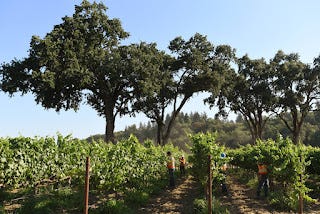 Walking in the vineyard is the man who owns the property and his gardener. The owner spots a fig tree that is not producing and he tells the gardener to cut it down.