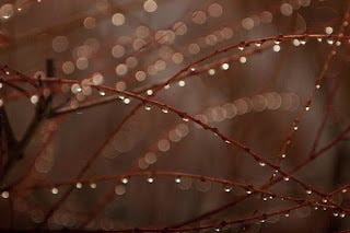 As I look out on this foggy morning from my window, I notice dew drops clinging to tiny branches on a tree nearby. Each drop glistens with the light that is trapped in it, while it hangs suspended, just the right weight that it doesn't fall.