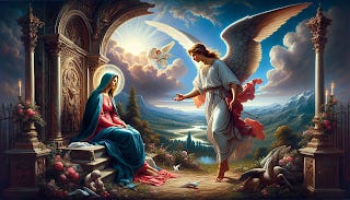 In the sixth month the angel Gabriel was sent by God to a town in Galilee called Nazareth, to a virgin engaged to a man whose name was Joseph, of the house of David. The virgin’s name was Mary. And he came to her and said, “Greetings, favored one! The Lord is with you.” But she was much perplexed by his words and pondered what sort of greeting this might be. The angel said to her, “Do not be afraid, Mary, for you have found favor with God. And now, you will conceive in your womb and bear a son, and you will name him Jesus. He will be great, and will be called the Son of the Most High, and the Lord God will give to him the throne of his ancestor David. He will reign over the house of Jacob forever, and of his kingdom there will be no end.” Mary said to the angel, “How can this be, since I am a virgin?” The angel said to her, “The Holy Spirit will come upon you, and the power of the Most High will overshadow you; therefore the child to be born will be holy; he will be called Son of God. And now, your relative Elizabeth in her old age has also conceived a son; and this is the sixth month for her who was said to be barren. For nothing will be impossible with God.” Then Mary said, “Here am I, the servant of the Lord; let it be with me according to your word.” Then the angel departed from her. - Luke 1:26-38