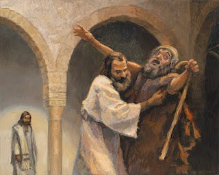 The man crying out for Jesus to stop and help him is blind. For him, this was his only chance to see again, so he ignored those who tried to silence him, and he got Jesus' attention.