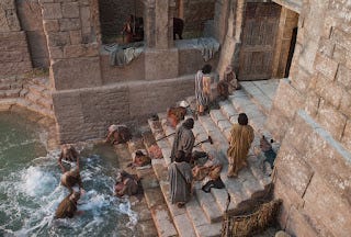 But Jesus showed him he had the power of the healing waters within him. Maybe the message is that we should not put all our faith in one approach, but believe in the outcome.