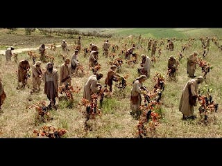 "For the kingdom of heaven is like a landowner who went out early in the morning to hire laborers for his vineyard. After agreeing with the laborers for the usual daily wage, he sent them into his vineyard. When he went out about nine o'clock, he saw others standing idle in the marketplace; and he said to them, 'You also go into the vineyard, and I will pay you whatever is right.' So they went. When he went out again about noon and about three o'clock, he did the same. And about five o'clock he went out and found others standing around; and he said to them, 'Why are you standing here idle all day?' They said to him, 'Because no one has hired us.' He said to them, 'You also go into the vineyard.' When evening came, the owner of the vineyard said to his manager, 'Call the laborers and give them their pay, beginning with the last and then going to the first.' When those hired about five o'clock came, each of them received the usual daily wage. Now when the first came, they thought they would receive more; but each of them also received the usual daily wage. And when they received it, they grumbled against the landowner, saying, 'These last worked only one hour, and you have made them equal to us who have borne the burden of the day and the scorching heat.' But he replied to one of them, 'Friend, I am doing you no wrong; did you not agree with me for the usual daily wage? Take what belongs to you and go; I choose to give to this last the same as I give to you. Am I not allowed to do what I choose with what belongs to me? Or are you envious because I am generous?' So the last will be first, and the first will be last." - Matthew 20:1-16