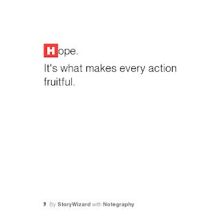 Hope for me is an active verb, not a passive one. Paul tells us to that hope allows us to patiently wait for what we do not see. It is hope that tells us it will come.
