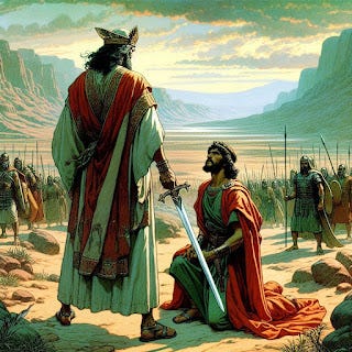 The people came up out of the Jordan on the tenth day of the first month, and they camped in Gilgal on the east border of Jericho. Those twelve stones, which they had taken out of the Jordan, Joshua set up in Gilgal, saying to the Israelites, "When your children ask their parents in time to come, 'What do these stones mean?' then you shall let your children know, 'Israel crossed over the Jordan here on dry ground.' For the Lord your God dried up the waters of the Jordan for you until you crossed over, as the Lord your God did to the Red Sea, which he dried up for us until we crossed over, so that all the peoples of the earth may know that the hand of the Lord is mighty, and so that you may fear the Lord your God forever." When all the kings of the Amorites beyond the Jordan to the west, and all the kings of the Canaanites by the sea, heard that the Lord had dried up the waters of the Jordan for the Israelites until they had crossed over, their hearts melted, and there was no longer any spirit in them, because of the Israelites. While the Israelites were camped in Gilgal they kept the passover in the evening on the fourteenth day of the month in the plains of Jericho. On the day after the passover, on that very day, they ate the produce of the land, unleavened cakes and parched grain. The manna ceased on the day they ate the produce of the land, and the Israelites no longer had manna; they ate the crops of the land of Canaan that year. Once when Joshua was by Jericho, he looked up and saw a man standing before him with a drawn sword in his hand. Joshua went to him and said to him, "Are you one of us, or one of our adversaries?" He replied, "Neither; but as commander of the army of the Lord I have now come." And Joshua fell on his face to the earth and worshiped, and he said to him, "What do you command your servant, my lord?" The commander of the army of the Lord said to Joshua, "Remove the sandals from your feet, for the place where you stand is holy." And Joshua did so. - Joshua 4:19-5:1,10-15