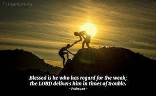 Today's psalm begins with a statement of joy that could be taken as a promise. If we consider those in need before ourselves, we will be delivered in the time of trouble.