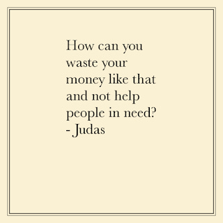 How Jesus responds is also quite telling, but we may find that too to be troublesome, since he talks about the poor being always with us. It sounds as though he is putting himself above the poor, which seems to support Judas' point.