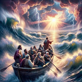 At its widest point, the Sea of Tiberius, or Galilee, is eight miles from shore to shore. They had gone half that distance when they found themselves in trouble.
