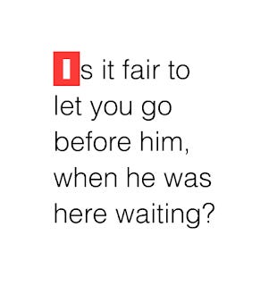 It is one thing to put you before me. That is my choice, to be humble and giving. But should I choose you before someone else, is that fair?