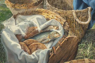 Today's reading is all too familiar for us. We know the story of Jesus feeding the crowd with a few loaves and fishes, and we focus on the miracle of the abundance of food and scraps created.