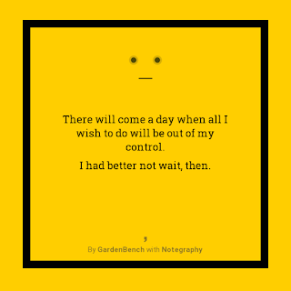 If we approach each day knowing there will come a time when we have little or no say in what we do, maybe we will be more apt to do what we need to do now, rather than wait.