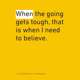 He has no idea when or how this will happen, but he never loses faith that he will be able to overcome all obstacles until it does.