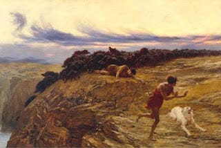 They came to the other side of the sea, to the country of the Gerasenes. And when he had stepped out of the boat, immediately a man out of the tombs with an unclean spirit met him. He lived among the tombs; and no one could restrain him any more, even with a chain; for he had often been restrained with shackles and chains, but the chains he wrenched apart, and the shackles he broke in pieces; and no one had the strength to subdue him. Night and day among the tombs and on the mountains he was always howling and bruising himself with stones. When he saw Jesus from a distance, he ran and bowed down before him; and he shouted at the top of his voice, "What have you to do with me, Jesus, Son of the Most High God? I adjure you by God, do not torment me." For he had said to him, "Come out of the man, you unclean spirit!" Then Jesus asked him, "What is your name?" He replied, "My name is Legion; for we are many." He begged him earnestly not to send them out of the country. Now there on the hillside a great herd of swine was feeding; and the unclean spirits begged him, "Send us into the swine; let us enter them." So he gave them permission. And the unclean spirits came out and entered the swine; and the herd, numbering about two thousand, rushed down the steep bank into the sea, and were drowned in the sea. The swineherds ran off and told it in the city and in the country. Then people came to see what it was that had happened. They came to Jesus and saw the demoniac sitting there, clothed and in his right mind, the very man who had had the legion; and they were afraid. Those who had seen what had happened to the demoniac and to the swine reported it. Then they began to beg Jesus to leave their neighborhood. As he was getting into the boat, the man who had been possessed by demons begged him that he might be with him. But Jesus refused, and said to him, "Go home to your friends, and tell them how much the Lord has done for you, and what mercy he has shown you." And he went away and began to proclaim in the Decapolis how much Jesus had done for him; and everyone was amazed. - Mark 5:1-20