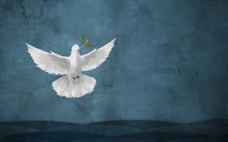 At the end of forty days Noah opened the window of the ark that he had made and sent out the raven; and it went to and fro until the waters were dried up from the earth. Then he sent out the dove from him, to see if the waters had subsided from the face of the ground; but the dove found no place to set its foot, and it returned to him to the ark, for the waters were still on the face of the whole earth. So he put out his hand and took it and brought it into the ark with him. He waited another seven days, and again he sent out the dove from the ark; and the dove came back to him in the evening, and there in its beak was a freshly plucked olive leaf; so Noah knew that the waters had subsided from the earth. Then he waited another seven days, and sent out the dove; and it did not return to him any more. In the six hundred first year, in the first month, the first day of the month, the waters were dried up from the earth; and Noah removed the covering of the ark, and looked, and saw that the face of the ground was drying. In the second month, on the twenty-seventh day of the month, the earth was dry. Then God said to Noah, "Go out of the ark, you and your wife, and your sons and your sons' wives with you. Bring out with you every living thing that is with you of all flesh-- birds and animals and every creeping thing that creeps on the earth-- so that they may abound on the earth, and be fruitful and multiply on the earth." So Noah went out with his sons and his wife and his sons' wives. And every animal, every creeping thing, and every bird, everything that moves on the earth, went out of the ark by families. Then Noah built an altar to the Lord, and took of every clean animal and of every clean bird, and offered burnt offerings on the altar. And when the Lord smelled the pleasing odor, the Lord said in his heart, "I will never again curse the ground because of humankind, for the inclination of the human heart is evil from youth; nor will I ever again destroy every living creature as I have done. As long as the earth endures, seedtime and harvest, cold and heat, summer and winter, day and night, shall not cease." - Gen. 8:6-22