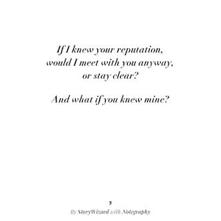 Maybe that is how we should be toward each other. Accepting and knowing based on what is presented to us by the person, and not by the reputation placed on them by others.
