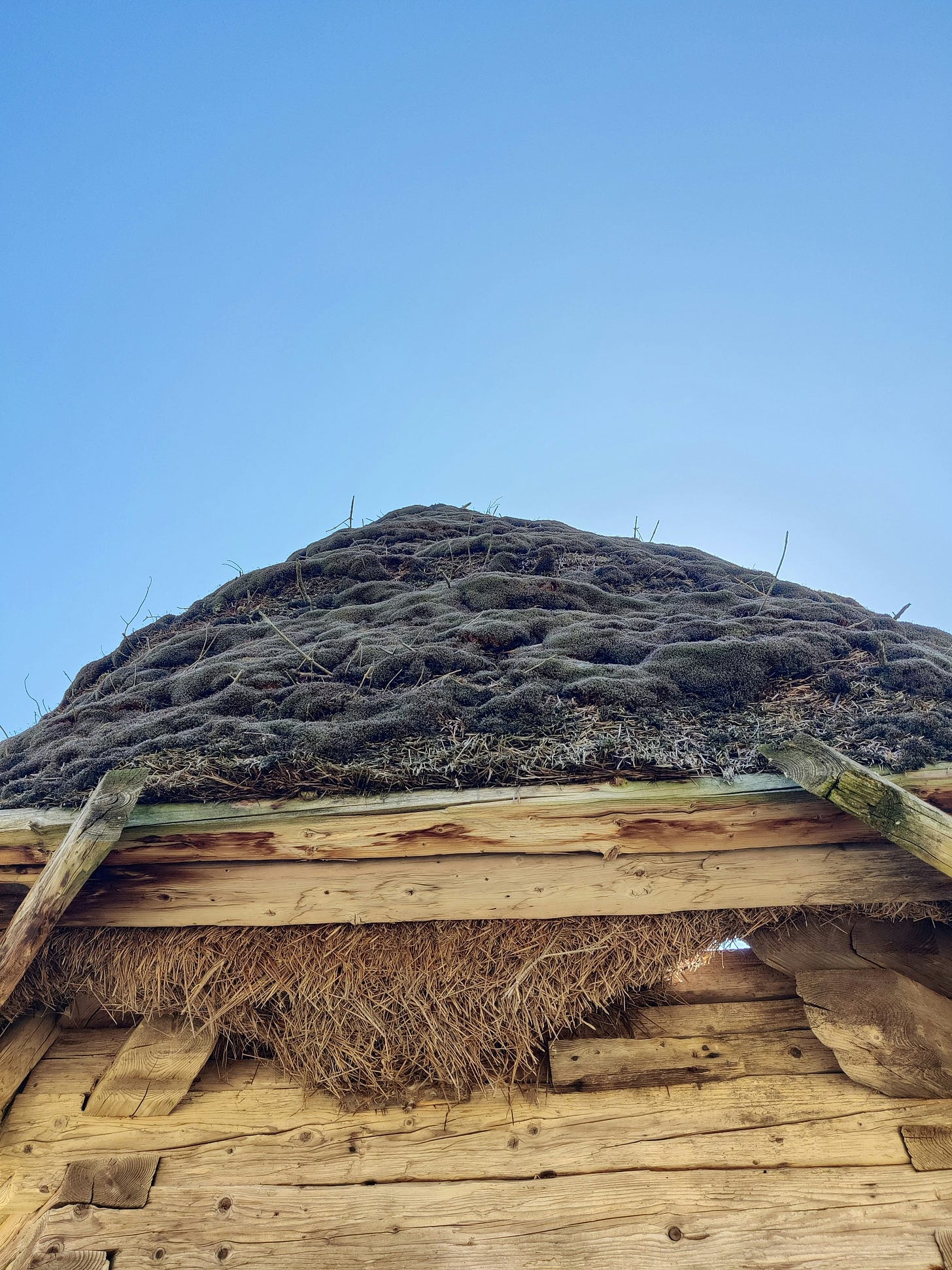 Chances are the type of roof this house had was a flat roof, suitable for drying produce and sleeping. It might have been made by laying wooden beams across stone walls, with thatch or reeds over the beams, sealed with mud for protection from the rain.