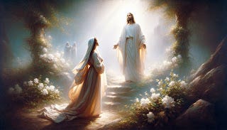 Mary gets to see Jesus again, but he warns her not to hold onto him. He is just passing through on his way to the Father.