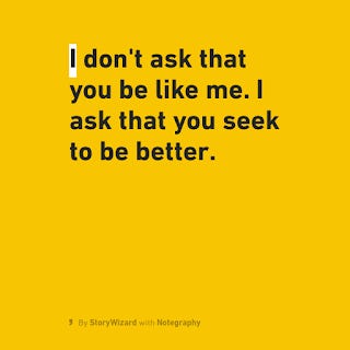 I wonder if that is how we should lead our lives as well. Shouldn't we be willing to offer ourselves as examples to help point people toward someone and something better for their lives?