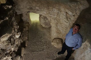 Our guide stands beside the tomb with the rolling stone visible