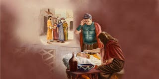 After Jesus had finished all his sayings in the hearing of the people, he entered Capernaum. A centurion there had a slave whom he valued highly, and who was ill and close to death. When he heard about Jesus, he sent some Jewish elders to him, asking him to come and heal his slave. When they came to Jesus, they appealed to him earnestly, saying, “He is worthy of having you do this for him, for he loves our people, and it is he who built our synagogue for us.” And Jesus went with them, but when he was not far from the house, the centurion sent friends to say to him, “Lord, do not trouble yourself, for I am not worthy to have you come under my roof; therefore I did not presume to come to you. But only speak the word, and let my servant be healed. For I also am a man set under authority, with soldiers under me; and I say to one, ‘Go,’ and he goes, and to another, ‘Come,’ and he comes, and to my slave, ‘Do this,’ and the slave does it.” When Jesus heard this he was amazed at him, and turning to the crowd that followed him, he said, “I tell you, not even in Israel have I found such faith.” When those who had been sent returned to the house, they found the slave in good health. Soon afterwards he went to a town called Nain, and his disciples and a large crowd went with him. As he approached the gate of the town, a man who had died was being carried out. He was his mother’s only son, and she was a widow; and with her was a large crowd from the town. When the Lord saw her, he had compassion for her and said to her, “Do not weep.” Then he came forward and touched the bier, and the bearers stood still. And he said, “Young man, I say to you, rise!” The dead man sat up and began to speak, and Jesus gave him to his mother. Fear seized all of them; and they glorified God, saying, “A great prophet has risen among us!” and “God has looked favorably on his people!” This word about him spread throughout Judea and all the surrounding country. - Luke 7:1-17
