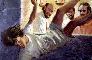 On the first day of the week, when we met to break bread, Paul was holding a discussion with them; since he intended to leave the next day, he continued speaking until midnight. There were many lamps in the room upstairs where we were meeting. A young man named Eutychus, who was sitting in the window, began to sink off into a deep sleep while Paul talked still longer. Overcome by sleep, he fell to the ground three floors below and was picked up dead. But Paul went down, and bending over him took him in his arms, and said, ‘Do not be alarmed, for his life is in him.’ Then Paul went upstairs, and after he had broken bread and eaten, he continued to converse with them until dawn; then he left. Meanwhile they had taken the boy away alive and were not a little comforted. - Acts 20:7-12