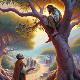 He entered Jericho and was passing through it. A man was there named Zacchaeus; he was a chief tax collector and was rich. He was trying to see who Jesus was, but on account of the crowd he could not, because he was short in stature. So he ran ahead and climbed a sycamore tree to see him, because he was going to pass that way. When Jesus came to the place, he looked up and said to him, "Zacchaeus, hurry and come down; for I must stay at your house today." So he hurried down and was happy to welcome him. All who saw it began to grumble and said, "He has gone to be the guest of one who is a sinner." Zacchaeus stood there and said to the Lord, "Look, half of my possessions, Lord, I will give to the poor; and if I have defrauded anyone of anything, I will pay back four times as much." Then Jesus said to him, "Today salvation has come to this house, because he too is a son of Abraham. For the Son of Man came to seek out and to save the lost." - Luke 19:1-10