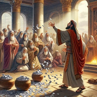 When morning came, all the chief priests and the elders of the people conferred together against Jesus in order to bring about his death. They bound him, led him away, and handed him over to Pilate the governor. When Judas, his betrayer, saw that Jesus was condemned, he repented and brought back the thirty pieces of silver to the chief priests and the elders. He said, "I have sinned by betraying innocent blood." But they said, "What is that to us? See to it yourself." Throwing down the pieces of silver in the temple, he departed; and he went and hanged himself. But the chief priests, taking the pieces of silver, said, "It is not lawful to put them into the treasury, since they are blood money." After conferring together, they used them to buy the potter's field as a place to bury foreigners. For this reason that field has been called the Field of Blood to this day. Then was fulfilled what had been spoken through the prophet Jeremiah, "And they took the thirty pieces of silver, the price of the one on whom a price had been set, on whom some of the people of Israel had set a price, and they gave them for the potter's field, as the Lord commanded me." - Matt. 27:1-10