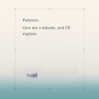 I am a fairly patient person. I like to arrive on time, be prepared and get right to the task at hand, but I usually don't get too upset if I am the only one who feels that way.