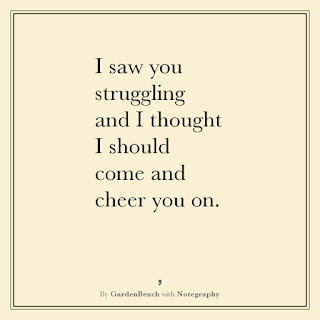 Maybe that's what our mission is while we are here on this fractured and broken planet, to cheer each other on, to be there when there is trouble, to calm the fears.